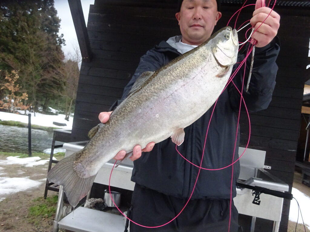 昨日に引き続き、平日プチ放流の日でした。午前中は放流効果で高反応の釣れ方で、レギュラーサイズと中型の数が釣れました。大型は午後が良かったです。 午前中は雪が降る中でしたが、皆さん休憩を取らず黙々と釣りに集中してらっしゃい… 続きを読む 今日の五頭FP。平日放流!