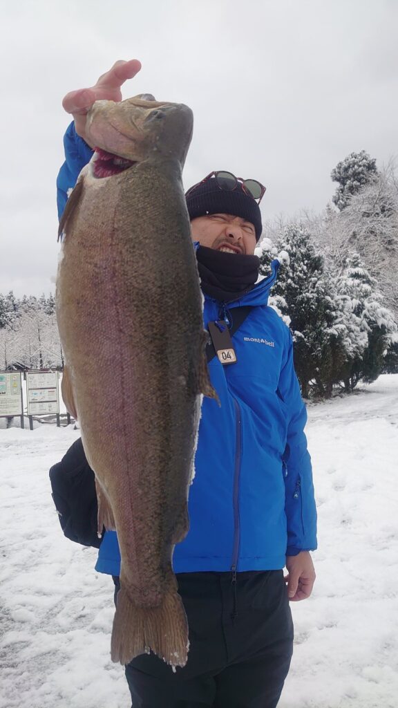 雪の降る時間もありましたが、風が無く釣りが楽しめました! 3連休の最終日も1号池2号池とも、レギュラーサイズ~中型~大型まで、数多く放流いたしました! 数釣りは半日100匹越えの出る爆釣で、放流タイムは時速30匹で釣れ皆… 続きを読む 小正月3連休の最終日!100匹越え!急遽、明日からの平日放流が決まりました!