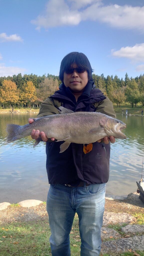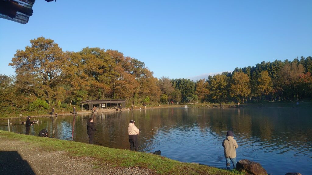 朝の冷え込みが強い日は快晴の青空が広がる1日になりました。池の周りも紅葉がキレイになってます。 晴れた日はお客様も沢山お越し頂きました。魚の反応は冷えてる朝より日差しが入る頃合いで…