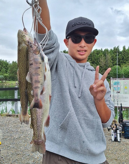 1号池は満水、2号池は改修工事も終わり満水となりました。今週の3連休から使用可能となる予定です。お楽しみに! 今日も大型魚の大量放流効果が続いています。午前午後とも大型魚が釣れていました。イクラ入りも釣れています。
