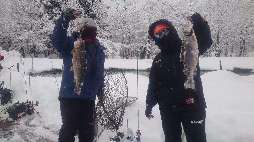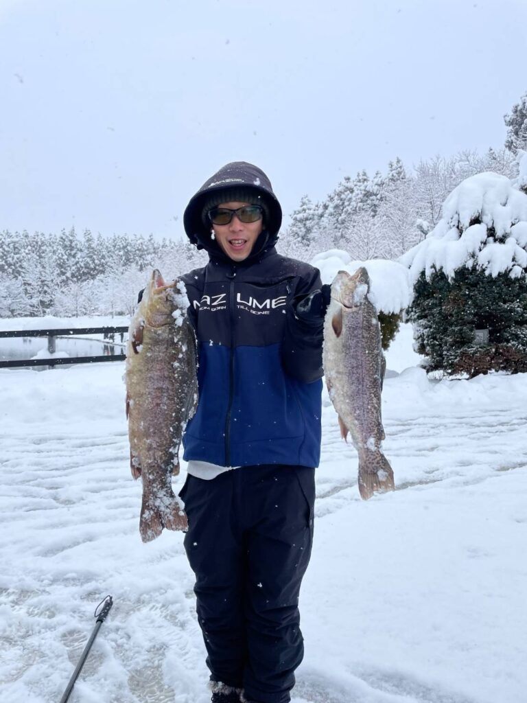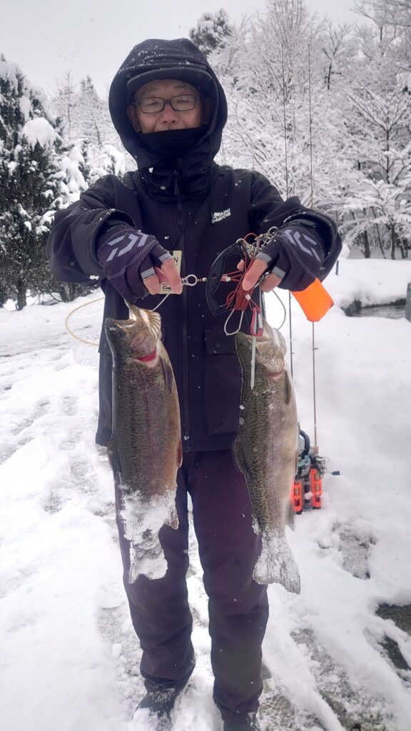 寒気が到来して寒い1日となりました。積雪は思ったより少なくてホッとしました。そんな中、沢山の方に遊びに来て頂きありがとうございます。久々の中型~大型は反応が良く、皆さん楽しまれていました。