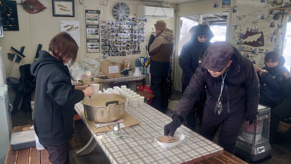 キッチンカーが来れなくなってしまったので、久々に五頭FPの炊き出しをやってみました。寒い中、温かいスープで皆さんに喜んで頂きました!