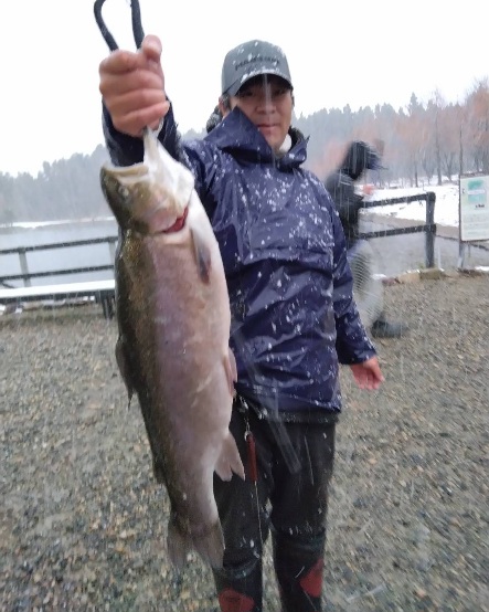 お客様は少なかったですが、今日も60cm後半の極太サーモンが釣れています!釣られたお客様も喜んでおられました。