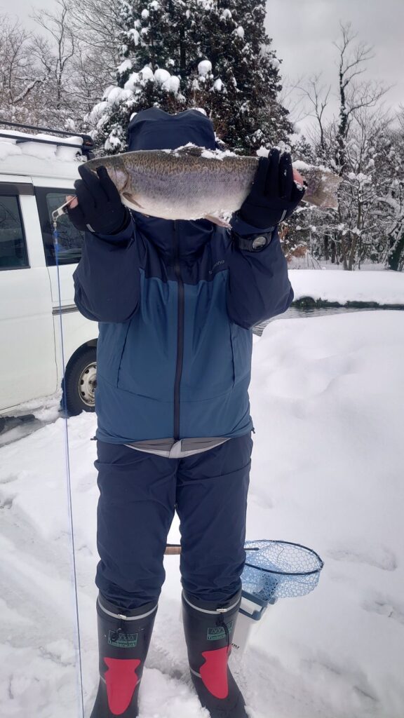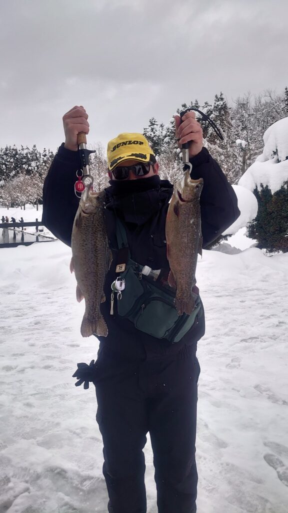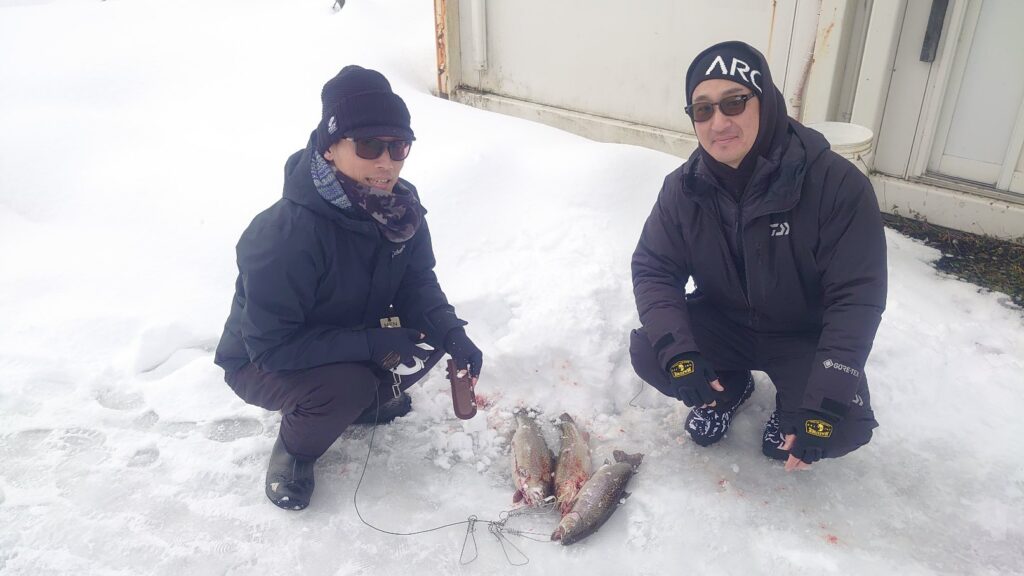 ガイドも凍る程の冷え込みでしたが、皆さん引きの強いロックトラウトを釣り上げていました。