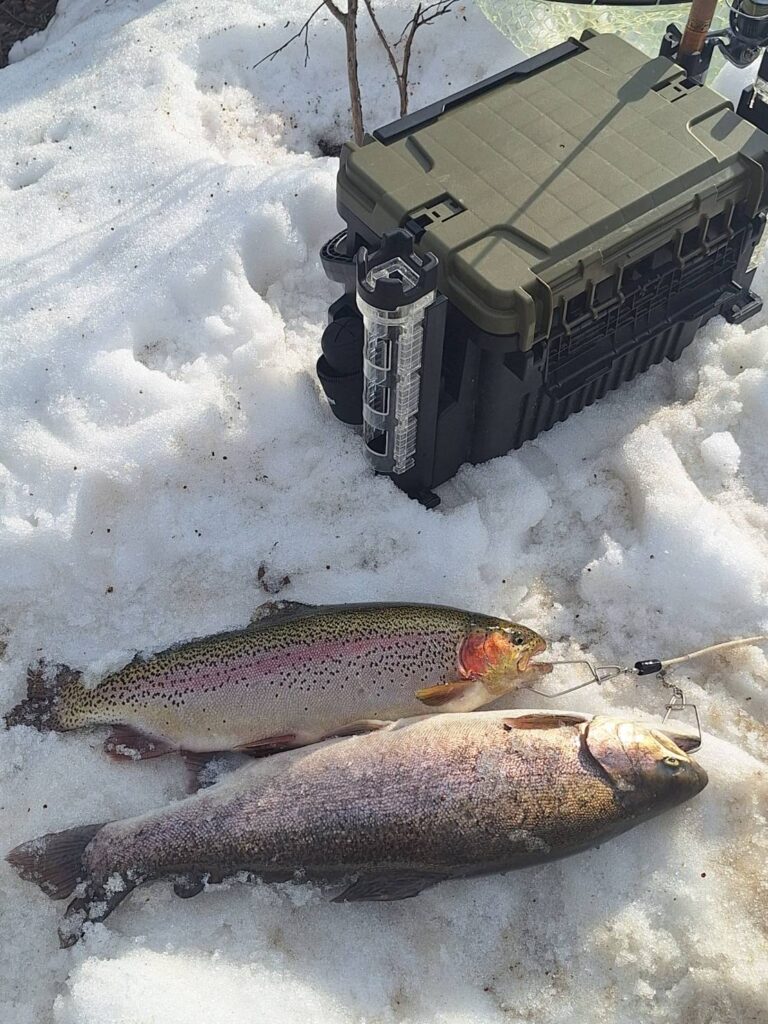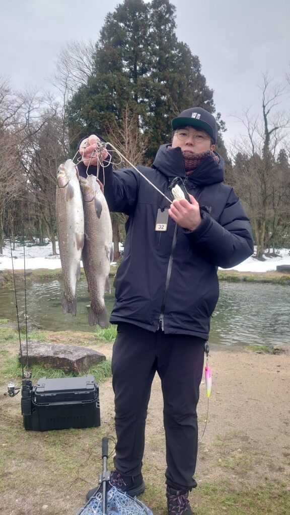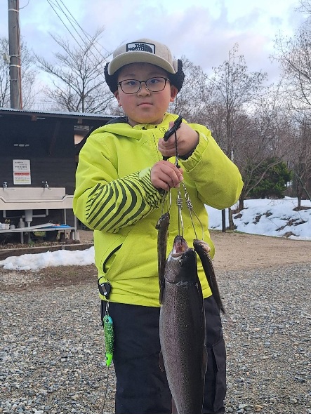 ロックトラウトにレインボーサーモンと大型魚が、スタートから好調に釣れてました。