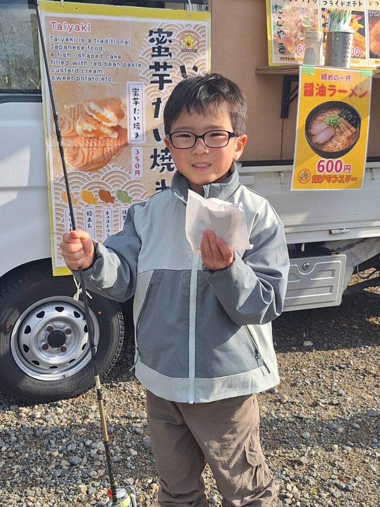 キッチンカーも来場してましたので、午前20個と午後は10個の早掛け大会も行いました!早掛け大会は、皆さんガンガン釣って獲得してました!