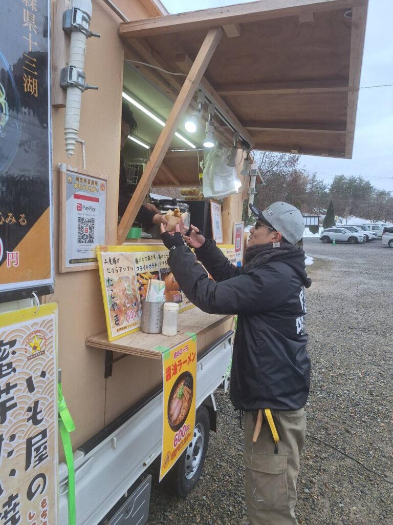 寒い日には、暖かい食べ物や飲み物は最高です。毎回、キッチンカーが代わり、色々な食べ物で楽しめます。今日のキッチンカーはヤキイモスターさんでした。