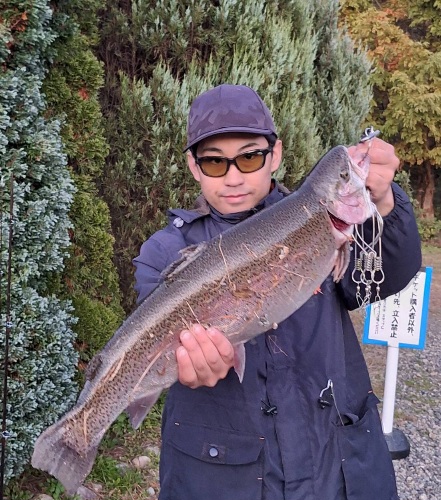 今日の放流は、大型レインボーサーモン、大型ロックトラウト、ニジマス、イワナ、ヤマメが放流されました。