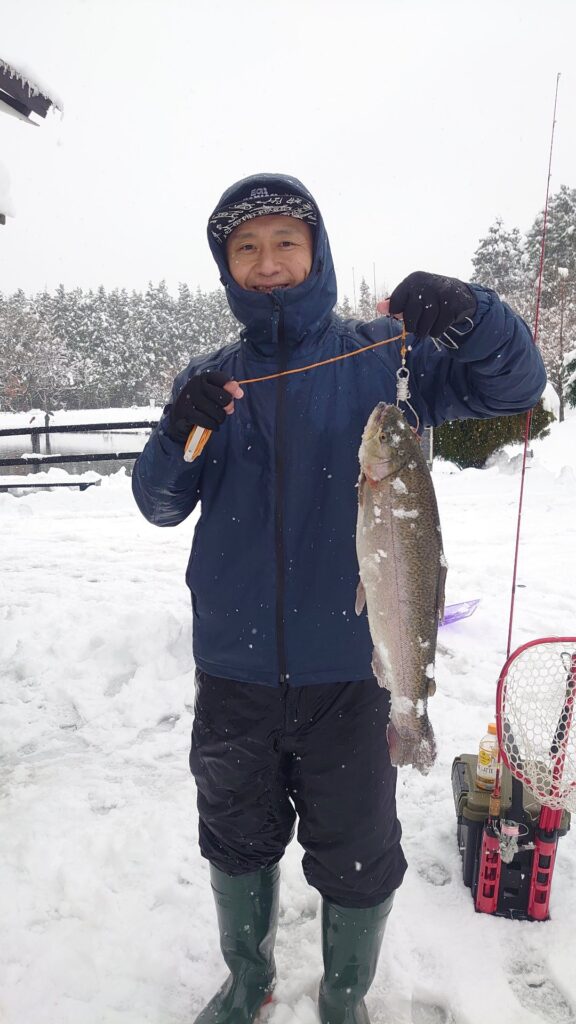 一晩にして雪が積もってしまいました。釣り場は除雪が入るので問題なく釣りが楽しめますよ!