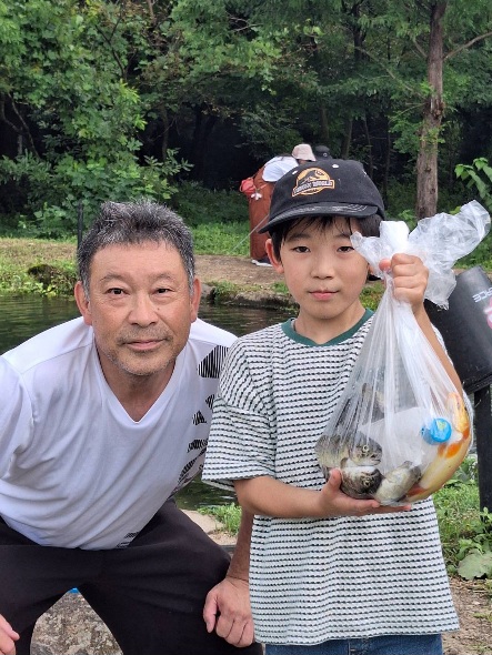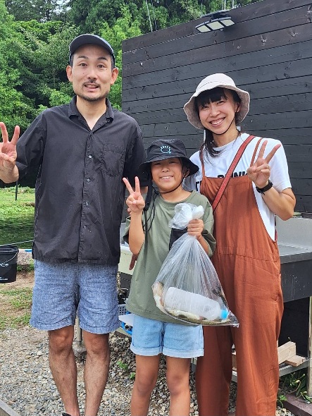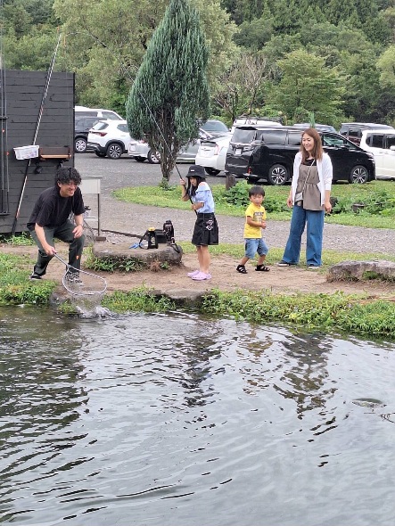 エサ釣りは、ファミリーの方が多く遊びに来て頂き、楽しい声が一日中聞こえていました。大きめの魚が放流されましたので、釣り竿が満月のように曲がり楽しそうでした。大当たりの大きな魚も釣れ喜んで頂きました。