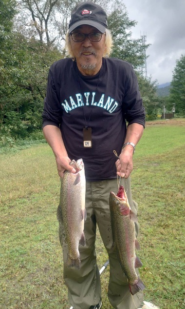 リヴァ2などレギュラーサイズも多く放流され数が釣れましたので大会練習になったと思います。この人気のリヴァ2は、数も釣れ、引きも強く、食べても美味しくて、最高にいい魚です!大量に放流されましたので狙って見て下さい。大物も釣れていました。ヤマメやイワナも釣れました。子供さんも沢山釣っておられました。