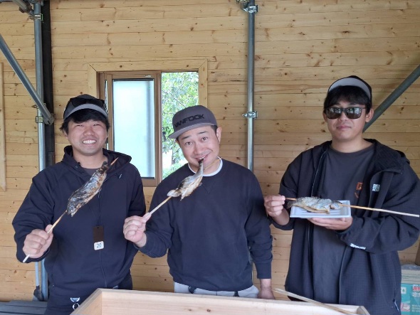 それと、今日はスペシャルゲスト!塩焼き名人の塩野さんが焼きに来てくれました!リヴァ2やニジマスの塩焼き最高に美味しかったです。ありがとうございました!