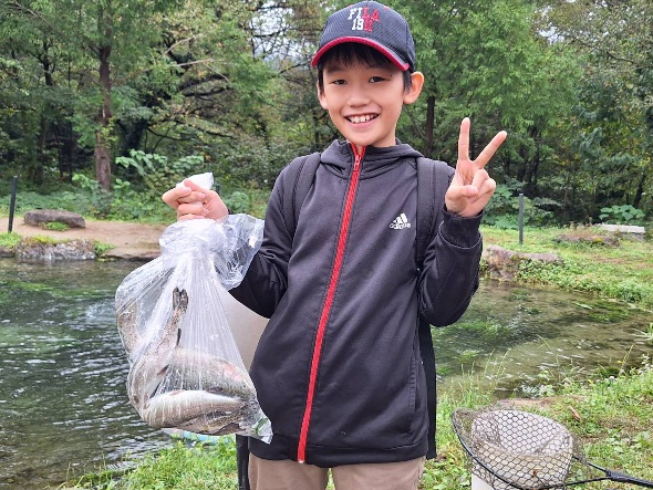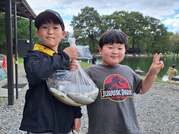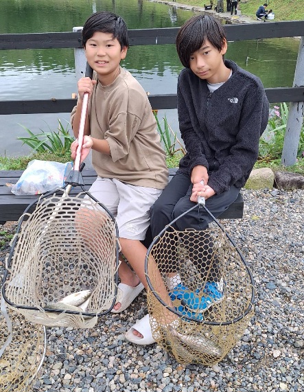 エサ釣りは、朝から夕方まで大勢の子供さん達が遊びに来てくれました。大当たりの大物も釣れました!