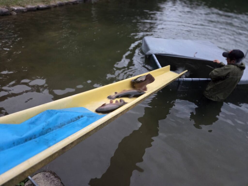 三連休の放流ですが初日は大型オンリーで行っちゃいます。大型ロックトラウト、大型レインボーサーモン、大型ニジマス、養殖場からのスペシャル大型になっています。