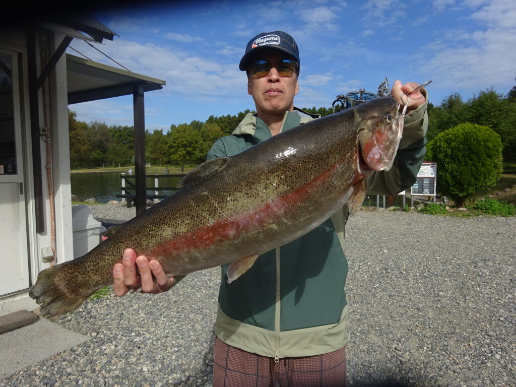 3連休に放流した、大型サーモンや大型ロックトラウトなど、養魚場が大切に育てた極太の魚が釣れています。記録サイズも上がりました。