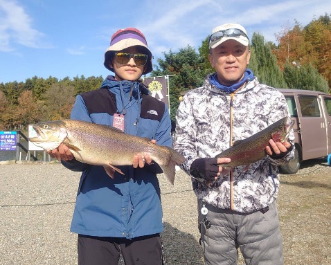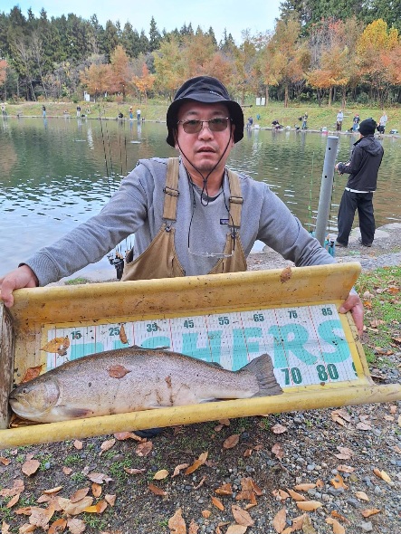 ビックワントーナメントも盛り上がりました!70cmは釣れませんでしたが、今日も60cm~60cm後半まで釣れ、最大は長さ68.5cm重さが凄く5.5キロの極太の大型ロックトラウトが釣れ驚きました。その他、大型レインボーサーモンや大型ロックトラウトの極太サイズが多く釣れました!2号池や午後からも大型魚が釣れました。