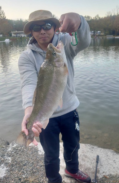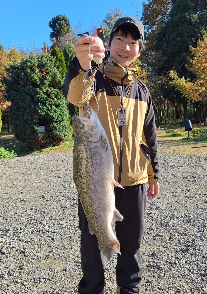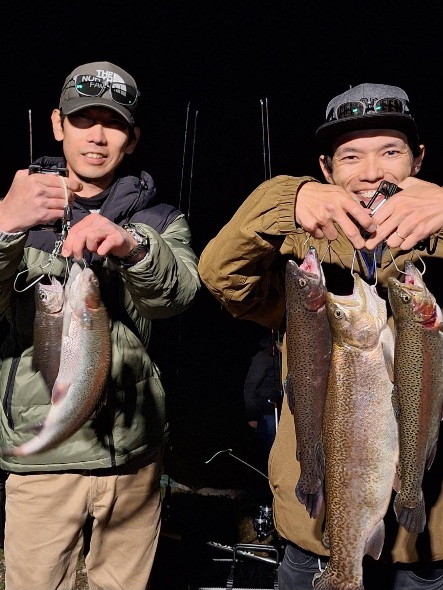 明日、3連休最終日の放流は、大型レインボーサーモン、大型ロックトラウト、イクラ入りサーモン、ニジマス、ヤマメ、イワナです。