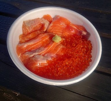 今日のスタッフまかない飯は、大型レインボーサーモンと大型ロックトラウトの熟成漬け丼サーモンのイクラ乗せでした。美味しかったです!