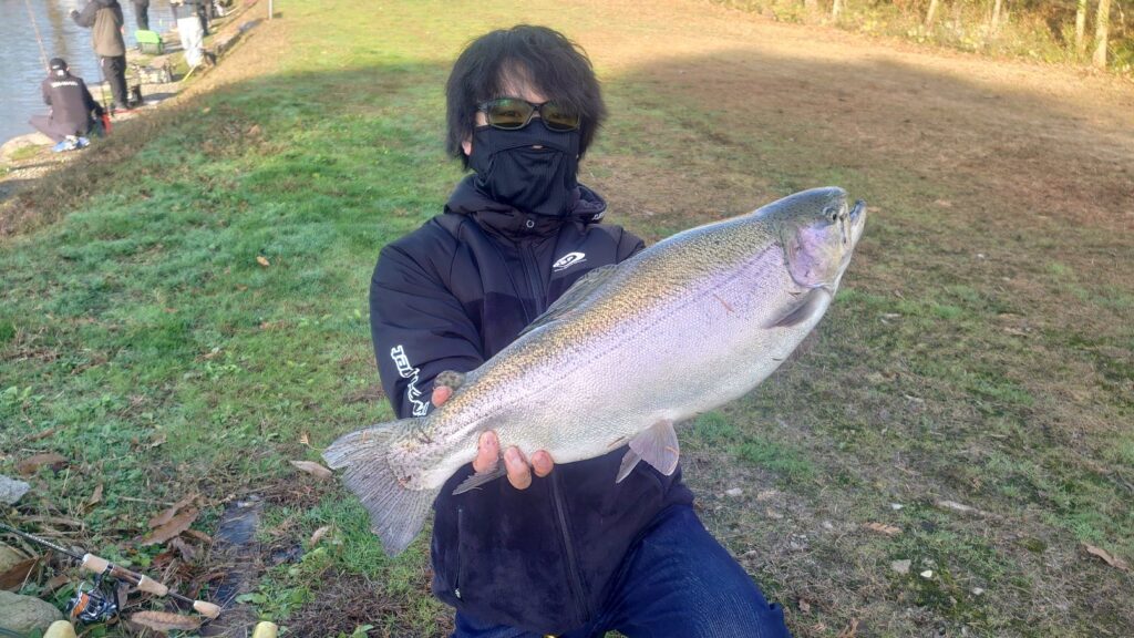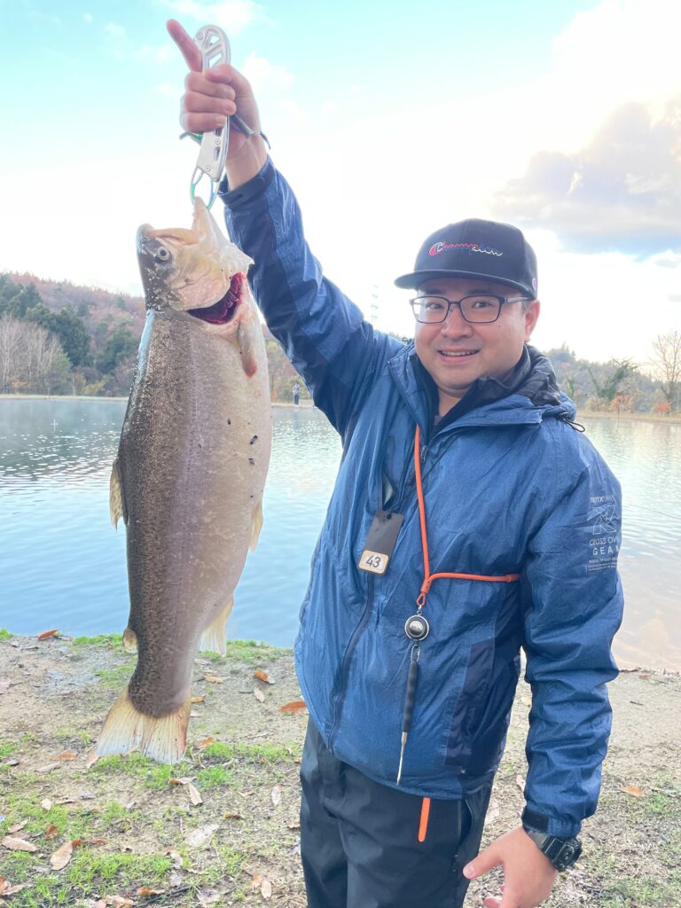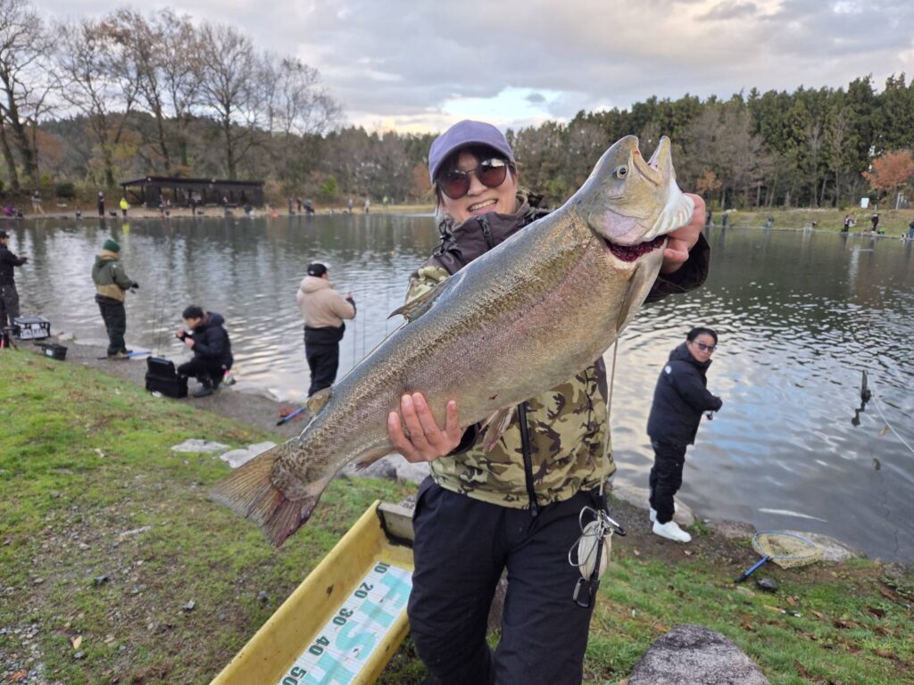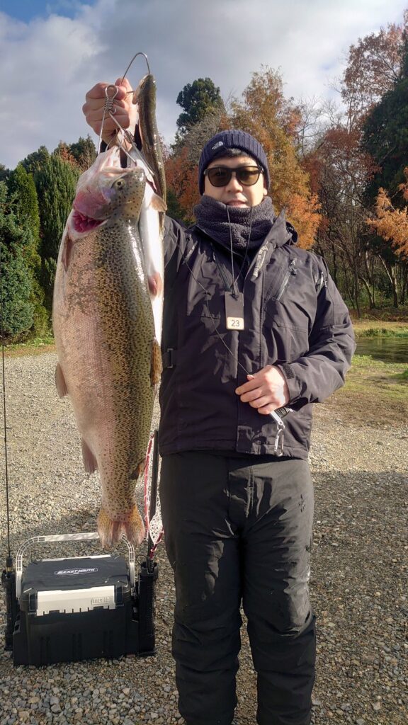 60オーバーなら4㎏クラスですが、今週の大型放流は凄いです!女性が釣った65.5㎝で5.5㎏オーバーのヘビー級も釣れてました。まだまだトーナメントの記録は最後まで分かりませんね。残り1日も期待と最後のチャンスがありそうです。