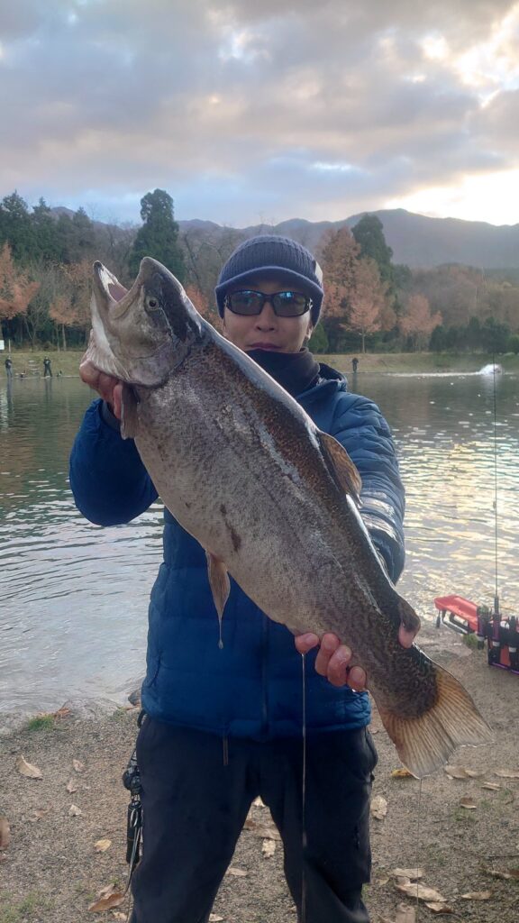 午前中は放流がメインで大物が釣れてます。午後も釣れる時間があり記録サイズも釣れてます。午後は69㎝が最大で釣れてました。2号池でも60~60cm後半が釣れています。
