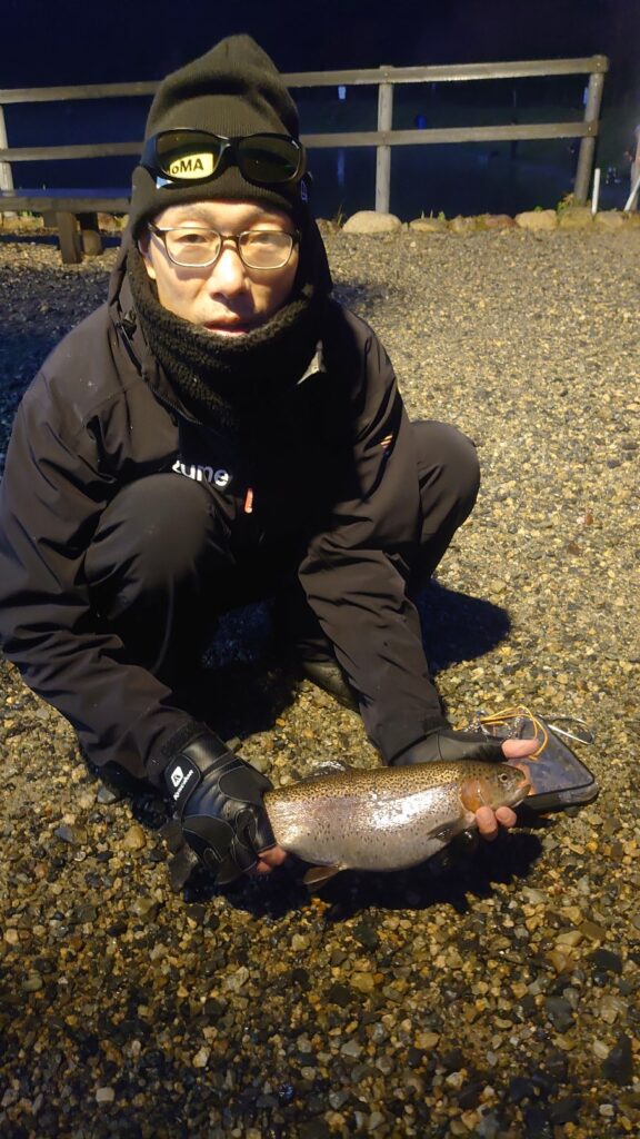 午前中は雨模様でした。大物より数釣りが中心でした。午後からは雨が止み魚も浮いてきた感じでした。まだ太いロックも釣れてます。水温も低く水も綺麗なのでボトムの反応も出てますね。