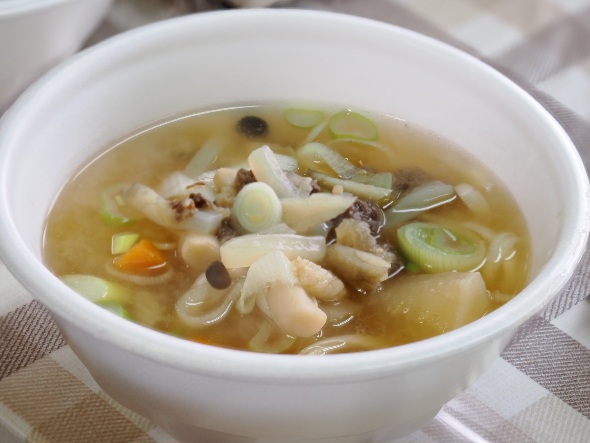 お昼のまかない飯は、お客様が作ってくれた熊汁でした。