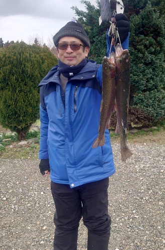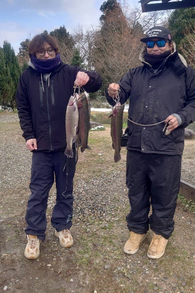 今日は、イワナが釣れたり、レギュラーサイズのニジマスが釣れたり、大型魚のレインボーサーモンやロックトラウトや美雪ますまで色々な魚が釣れました。