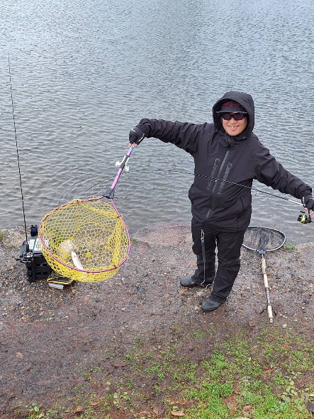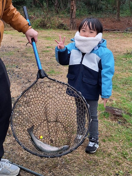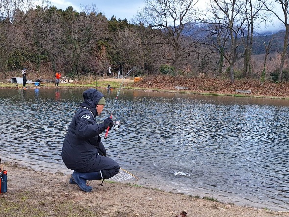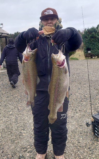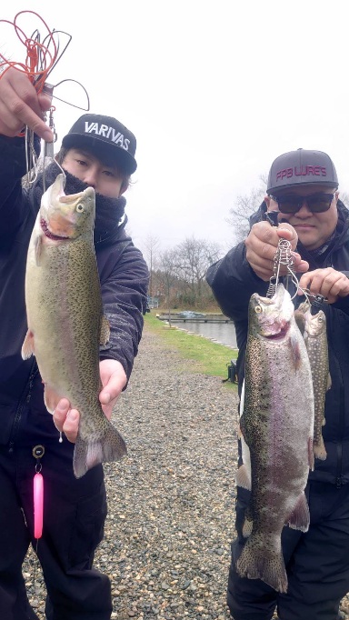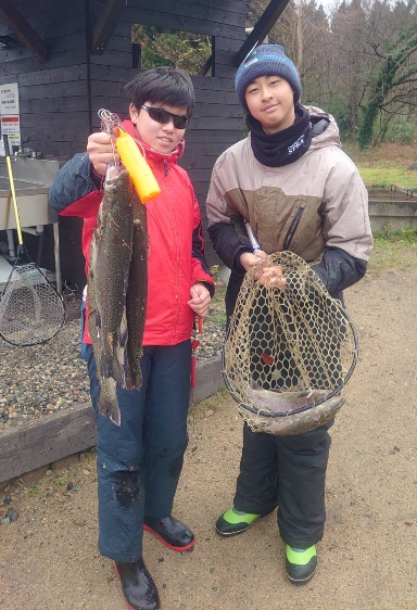 雨や風の1日となりました。お客様は少なめでしたが、放流魚と残存魚が釣れていました。