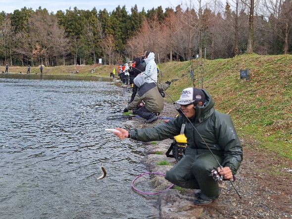 2号池では、トビヌケ様の貸切イベント「エリアトラウトセミナー」が開催され、エリアトラウト初心者の方々の釣り教室が開催されました。簡単なエリアテクニックやミニ大会など最後まで楽しめる教室でした。魚も沢山釣れました!