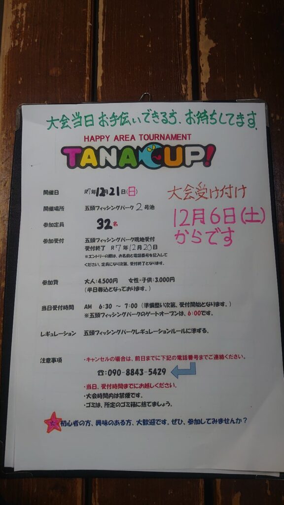 日曜日開催のタナカップはもう1~2名で満員になります。エントリーをしたい方はお早めにお願いいたします。