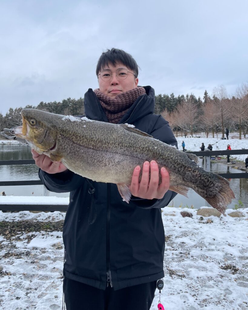 年末放流の大型サーモンは、太さもある極上サーモンが沢山放流され、沢山釣れました!一人で何本も大型を釣る方もおられました。