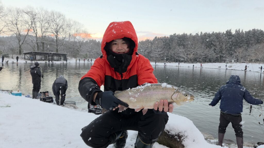 年末放流の大型サーモンは、太さもある極上サーモンが沢山放流され、沢山釣れました!一人で何本も大型を釣る方もおられました。