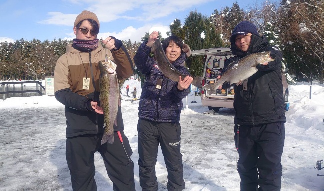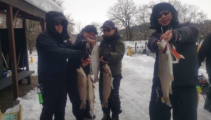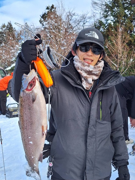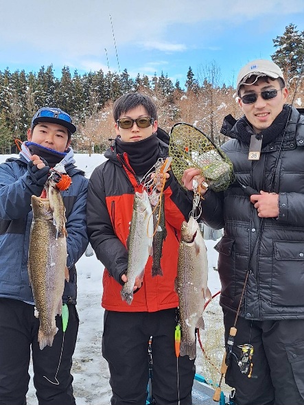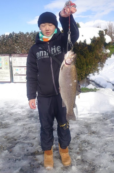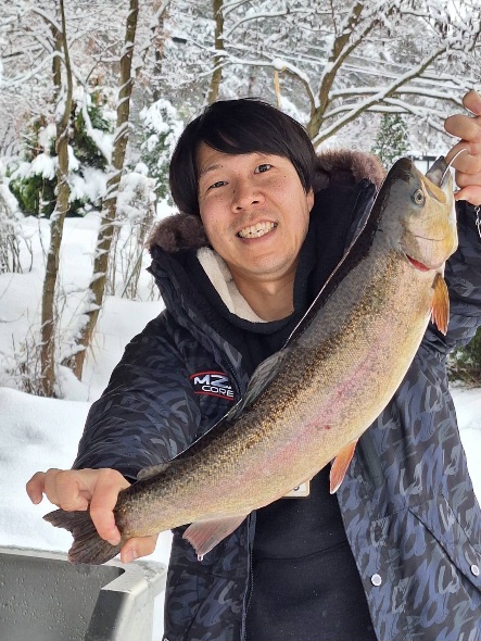 新年初日の昨日も大放流、今日も大放流でレギュラーサイズ~大型まで沢山の魚が釣れている五頭FPです。