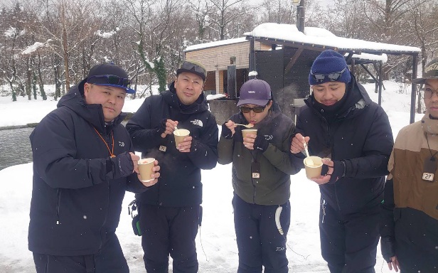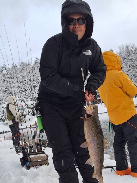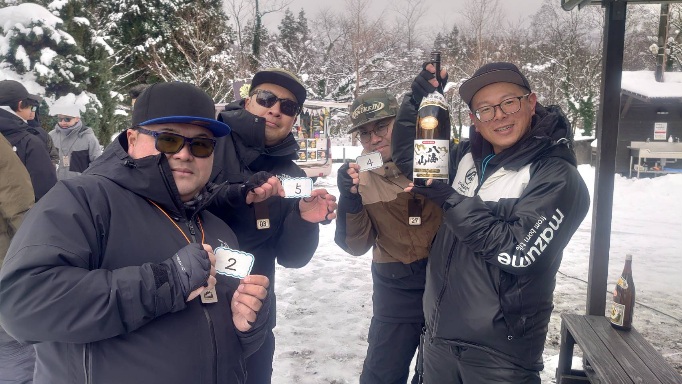 今日も風は無く、雪が降る時間もありましたが、青空も出て釣りが楽しめました。
