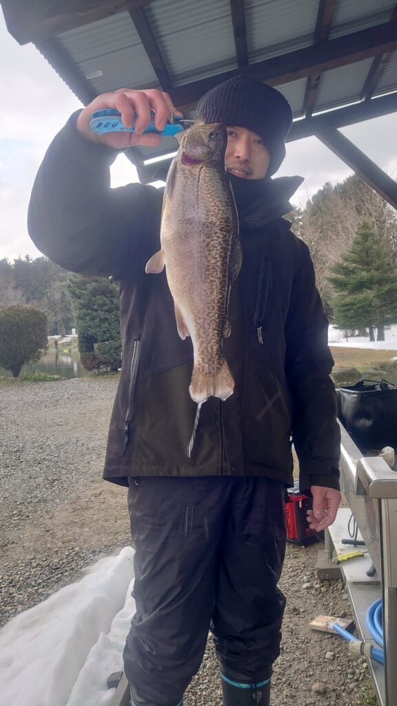 朝から雨が降ったり止んだりの1日となりました。積もってた雪もだいぶ溶けてくれましたので有りがたいです。スタートは少し薄暗い中でしたが魚は高反応でした。