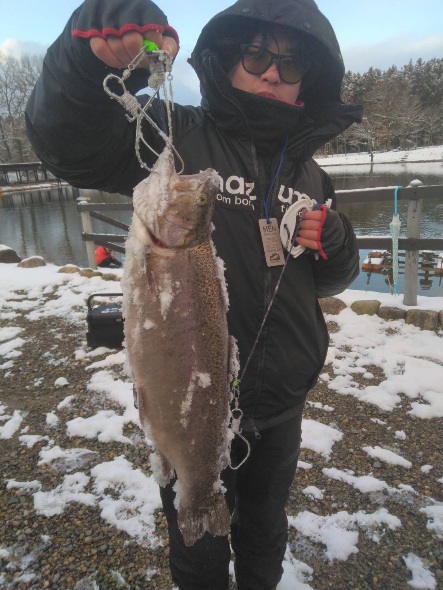 今日の五頭FP。連日の大物釣り! 投稿日時:2026/01/20 (火) 連日、大物が釣れています。土日と多くの大型が放流され、釣れ残りの大型が今日も釣れています。大きい魚は60~65cm前後が釣れました! 県外からのお客様も少し多めで、2日連続で大物釣りを楽しんでる方もおられました。魚体も綺麗で大きくヒレピンで喜んでいました。 1人で、2~5本の大物を釣った方もおられました。 数釣りも釣れています。パターンを見つけると連発して数が伸びます。ボトムやミノーが良かったようです。