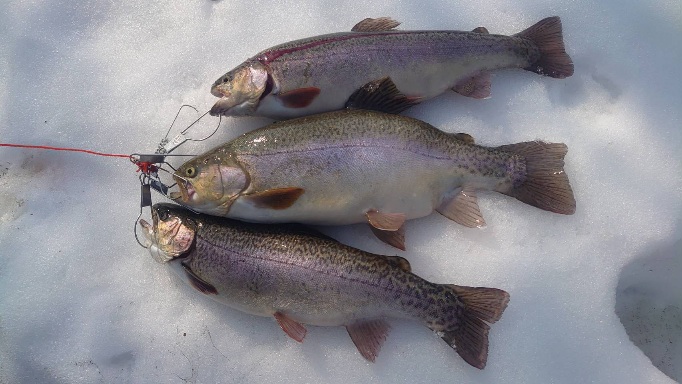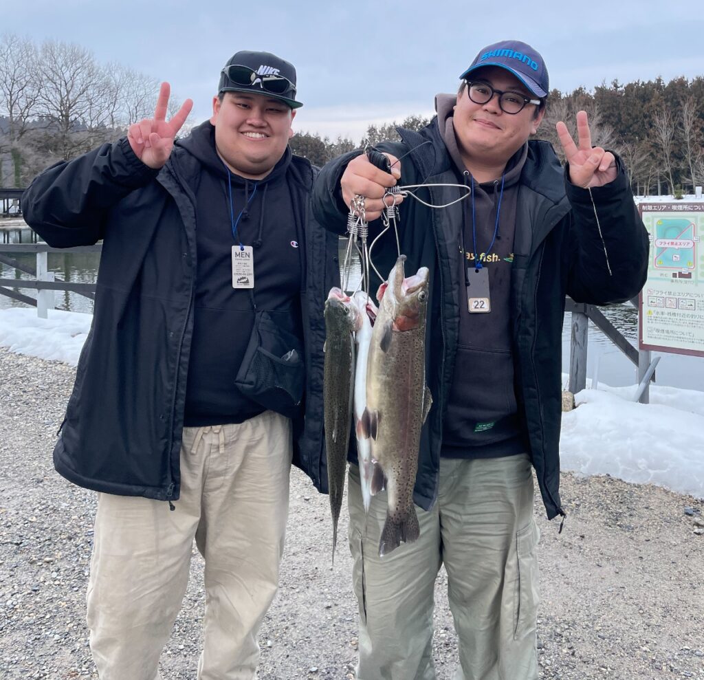 チェリートラウトを大量放流した効果でしょうか?ロックトラウトやレインボーサーモンなど大物の活性も上がり、午前午後と釣れました!