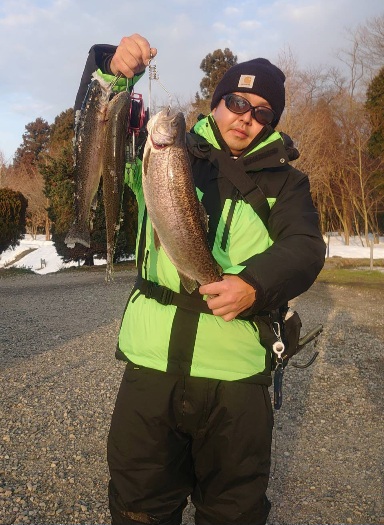 数が釣れると何故か?放流していないロックトラウトやレインボーサーモンの中型~大型魚が午前午後とも釣れ、一人で何本も釣る方には驚きました!