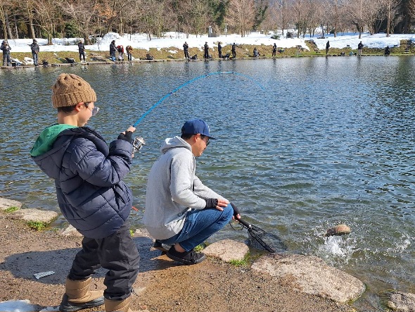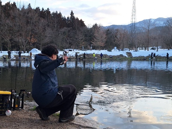 沢山の魚を放流しましたので、子供さんさんや初心者の方も、色々なルアーで魚が釣れていました。