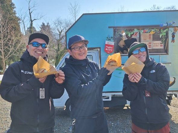 大人気のキッチンカー!クミンクミンさんも来ました。朝は米農家のおにぎり(梅とタラコで300円)と豚汁(200円)が販売され即完売!特性カレー(600円)も完売!バインミーやガパオライスも完売の大人気でした。どれを食べても安くて美味しい。また、来てくれますので食べてみて下さいね!