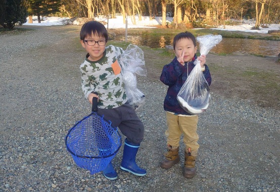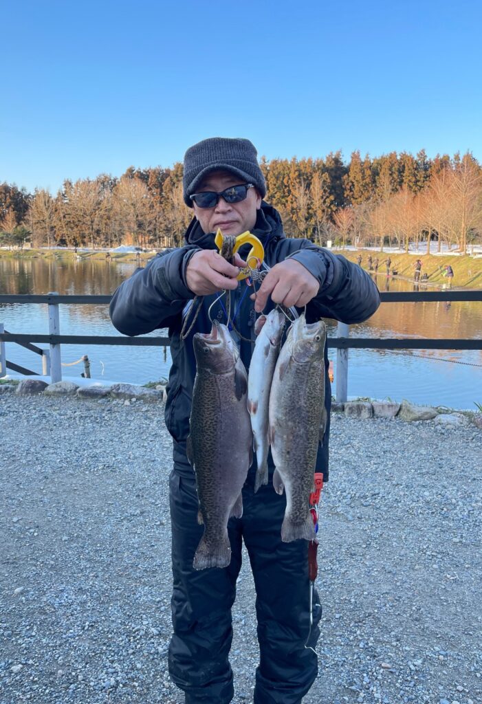 レギュラーサイズも、表層〜ボトムまで釣れ数釣りも楽しめました。1号池2号池とも、常連さん達は半日50匹前後の釣果でした。子供さん達も、レンタルタックルで楽しそうに釣っていました。