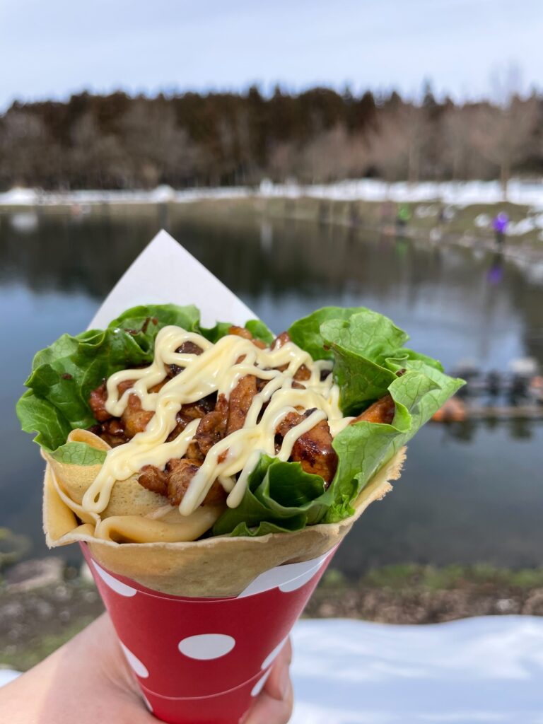 クレープの協賛を25個を頂き、クレープ早掛け大会を午前午後と開催しました。