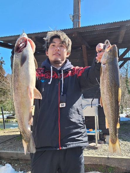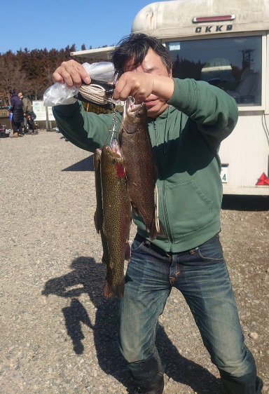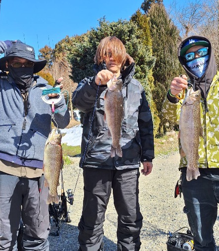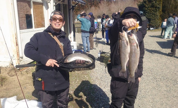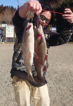 ニジマス・イワナ・ヤマメのレギュラーサイズも多く放流しましたので数釣りも楽しめました。