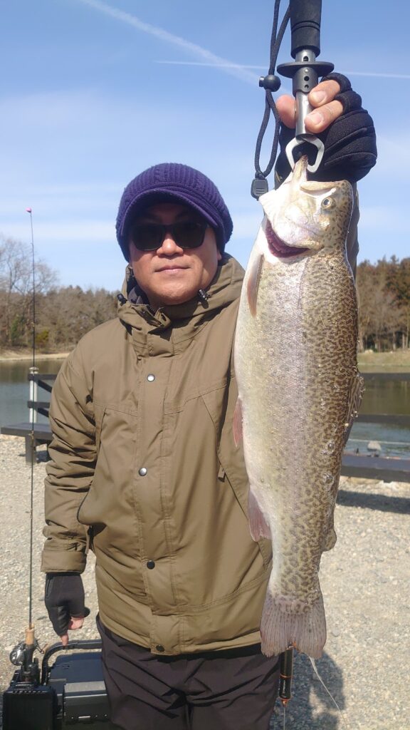 今日の五頭FP。火曜日放流やります! 投稿日時:2026/03/02 (月) 天気は良かったものの風邪が冷たく寒さを感じる1日になりました。段々と池の魚は春を感じてる様で回遊が多くなってきました。 今日1番は午後に釣れた大型ニジマスです。最近は残存の大型魚もちょくちょく釣れてますね!三寒四温で春も、もうすぐやってくるので大型も動き始めたかもしれませんね! 程よいサイズのロックトラウトは皆さん喜んで持ち帰ります!赤身は人気ですね。 明日も平日放流入りますのでお楽しみください!