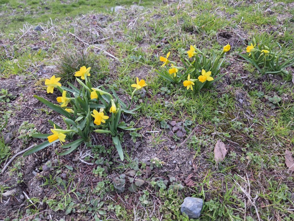 毎日、良い天候が続いています。池の周りの、花も咲いて春近しです。